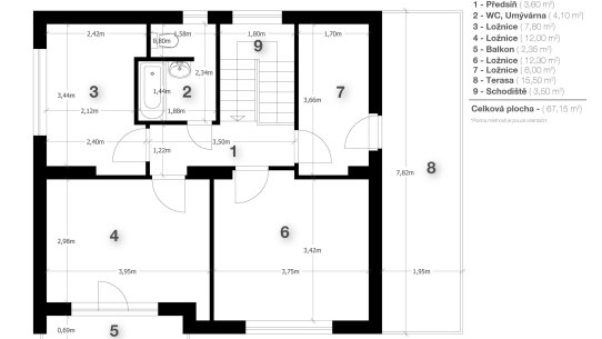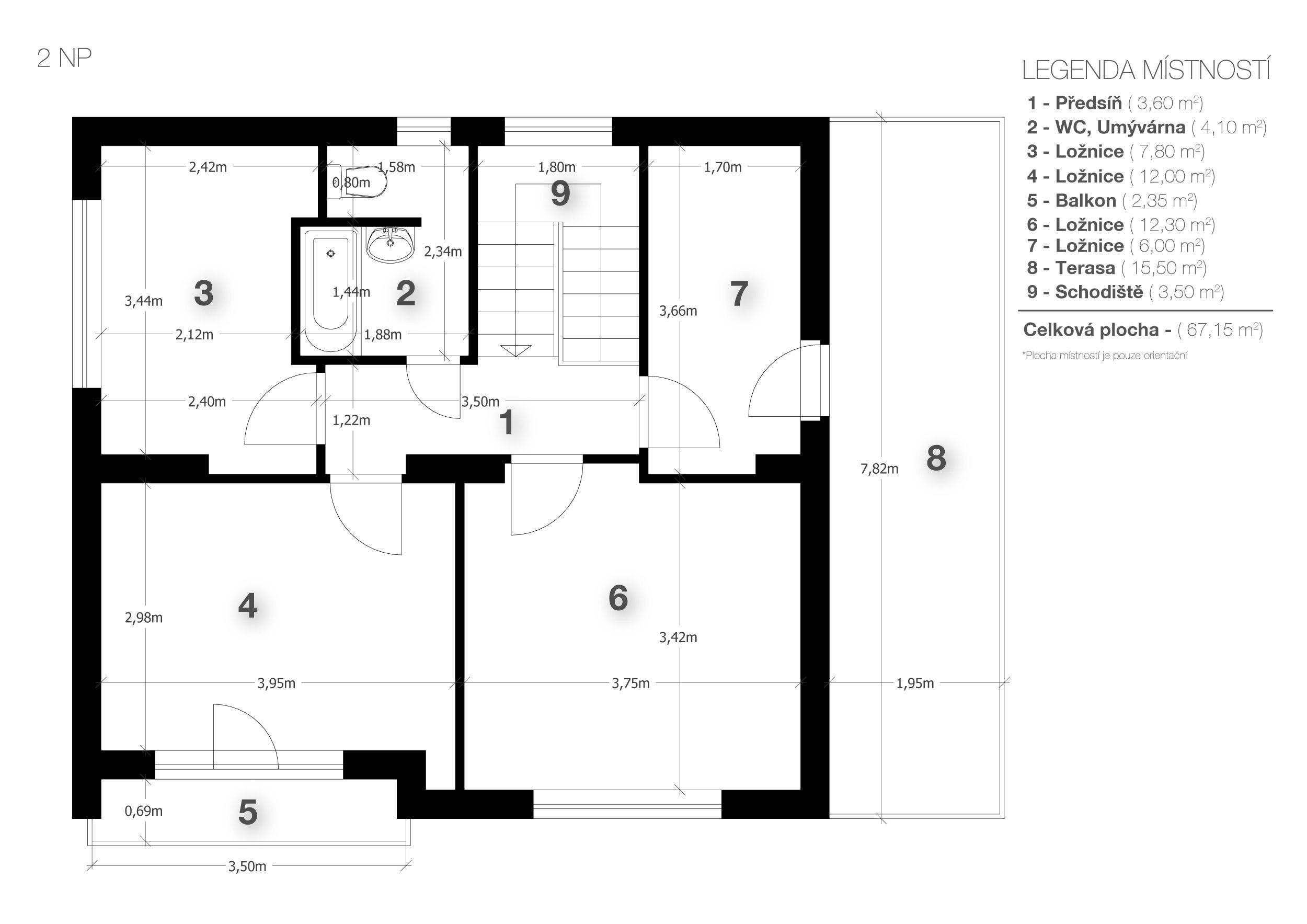 V patře jsou čtyři samostatné pokoje, ze kterých může být krásná ložnice, dětský pokoj, kancelář i šatna. Dva pokoje mají navíc přístup na terasu a balkon. Ranní shon vám zjednoduší dvě koupelny, jedna v přízemí a druhá v patře.