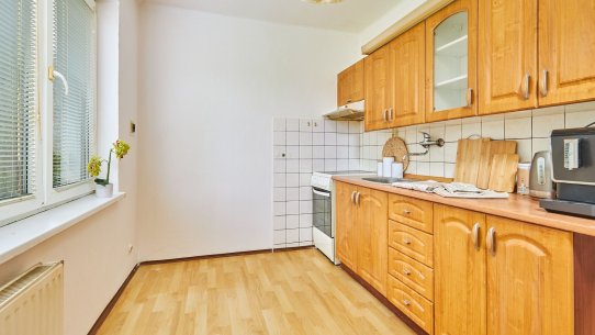 Kuchyně je hned vedle přes chodbu, takže to pro něco na zub není daleko. A s knížkou si můžete zalézt na verandu s výhledem do lesů.