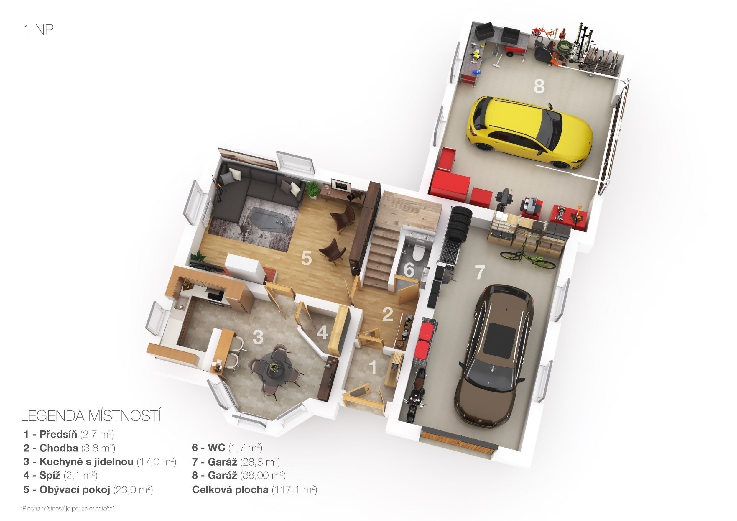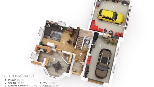 Máte doma kutila? Tak to pro vás bude garáž o velikosti skoro 29 m² víc než příjemným bonusem. Zaparkujete v ní auto, uskladníte kola, gumy, zahradní techniku… A to není všechno. Ve druhé garáži je dost místa na plnohodnotnou dílnu.