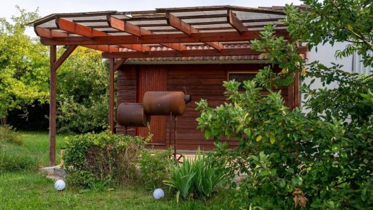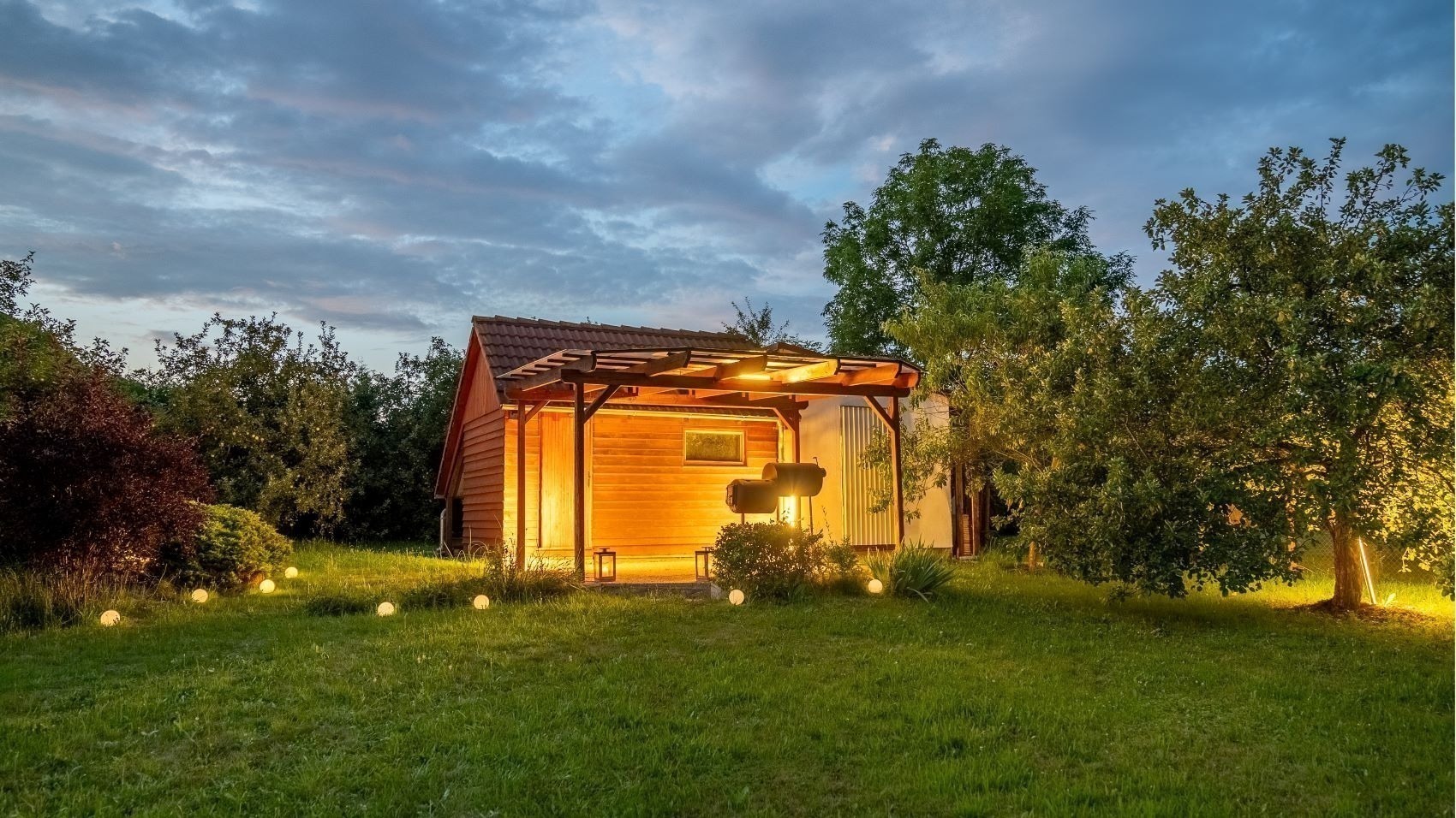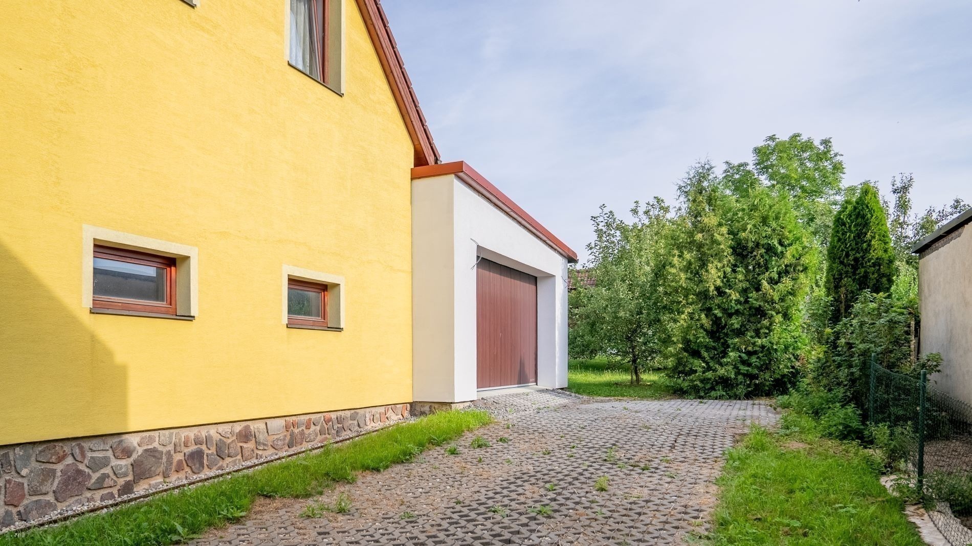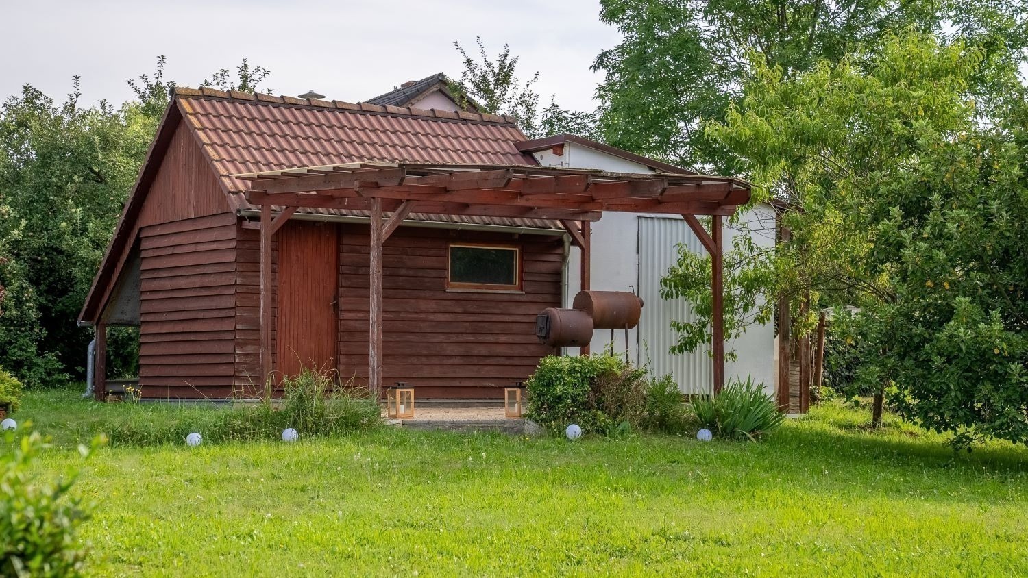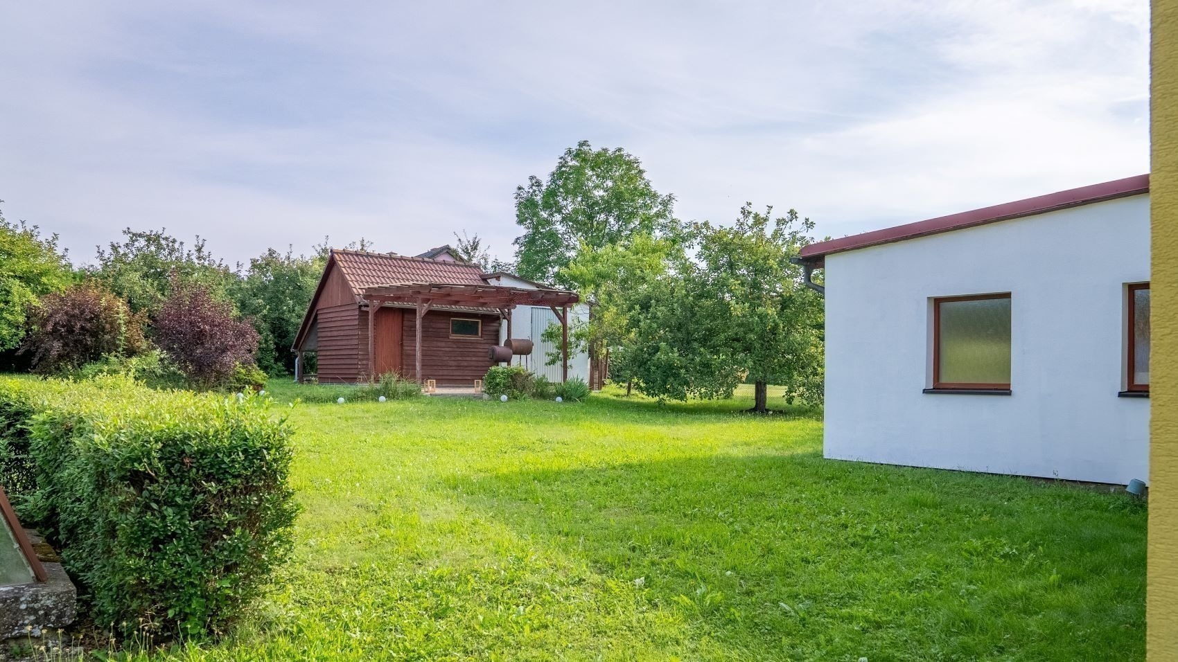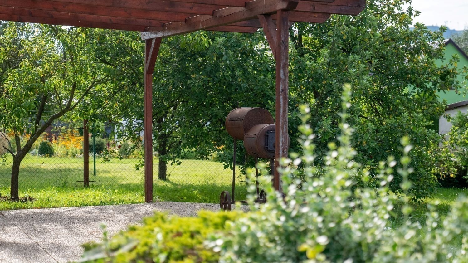 Na pozemku o velikosti 1 210 m² je kromě domu a garáží taky obrovská zahrada. V té na vás čekají vzrostlé stromy, udržovaný trávník a hlavně nekonečná pohoda – třeba pod pergolou u zahradního domku. U domku je navíc skládek na zahradní techniku a nechybí ani sklep na brambory nebo pár pivek.