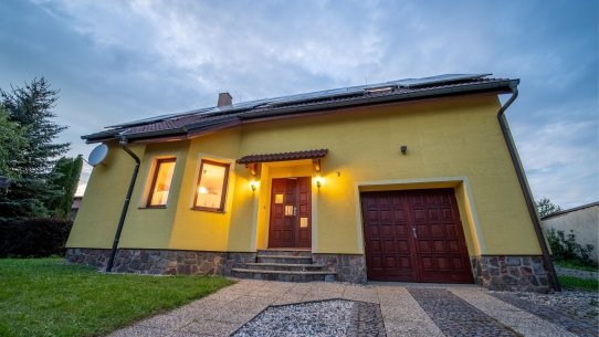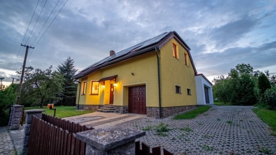 Dům je postaven z pórobetonových tvárnic Porfix s příčkami z plných cihel a zateplený polystyrenem 5 cm. Fasáda je silikonová a i po letech stále drží svoji barvu. Vaří se na plynu, vytápění je řešeno plynovým kotlem a přitopit si můžete i v krbu. Dům má fotovoltaiku s výrobou 7,5 kW a s roční výrobou 7,8 MW. V technické místnosti je příprava na změnu způsobu vytápění nebo na ohřev vody.
