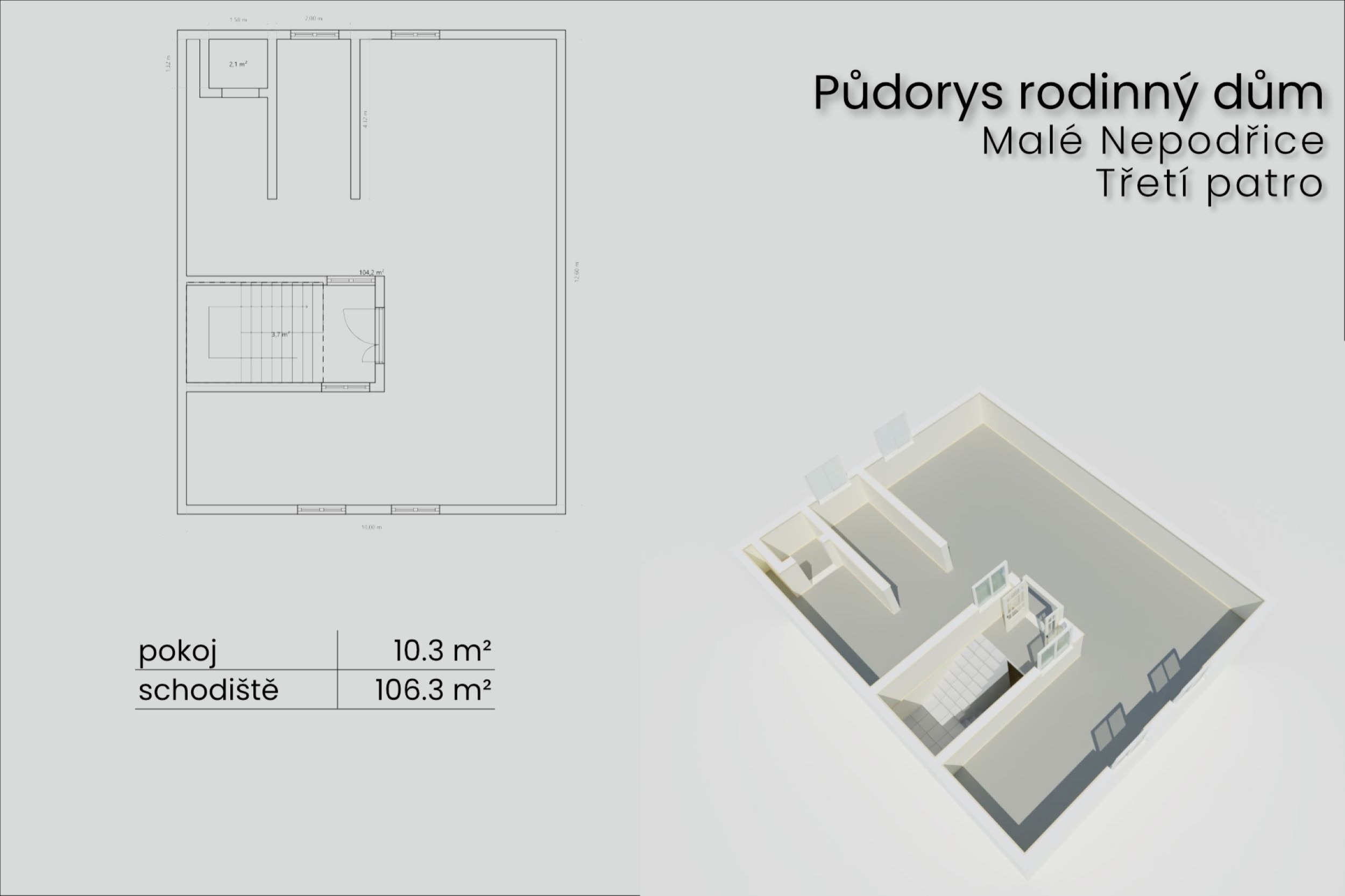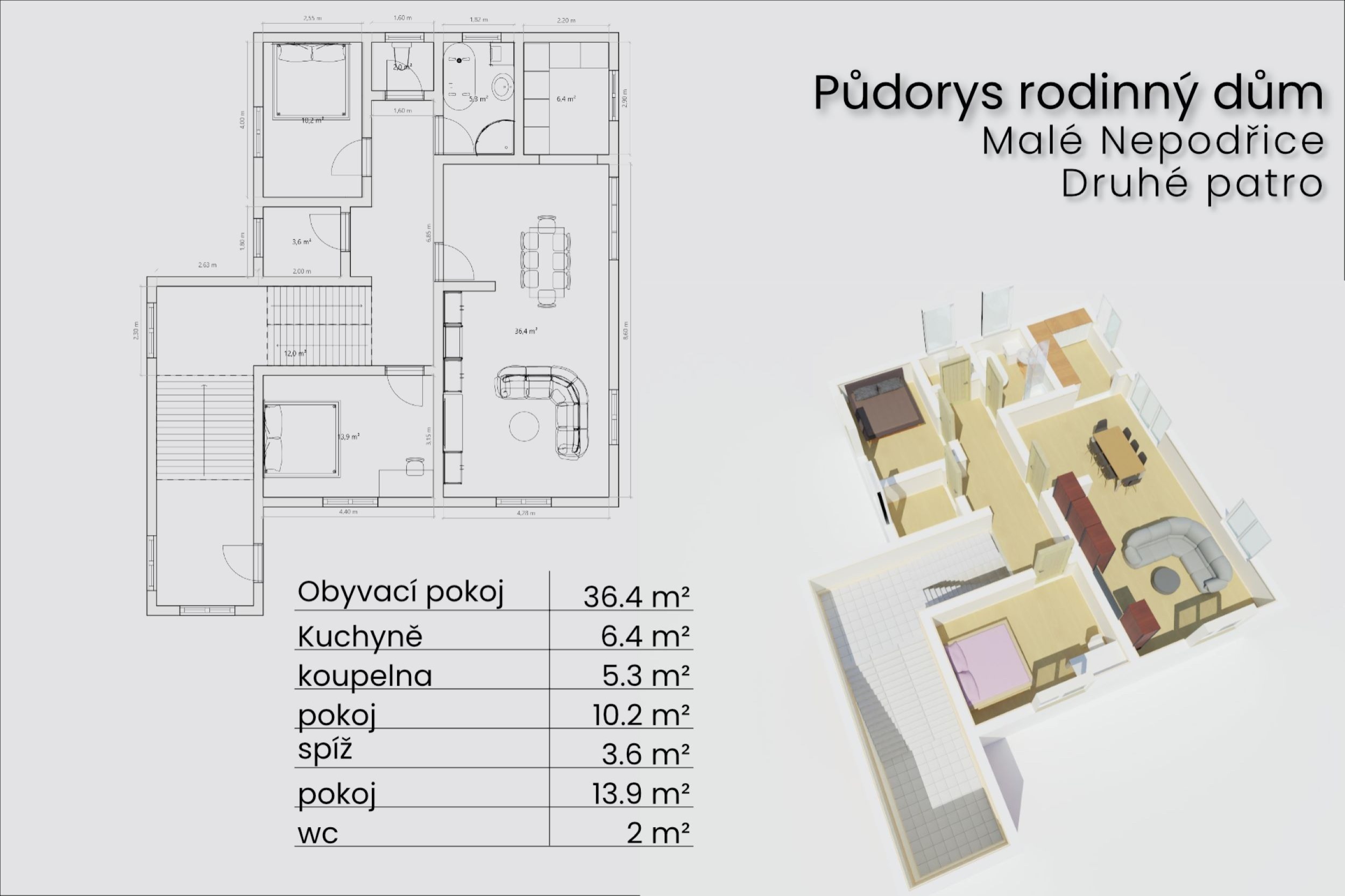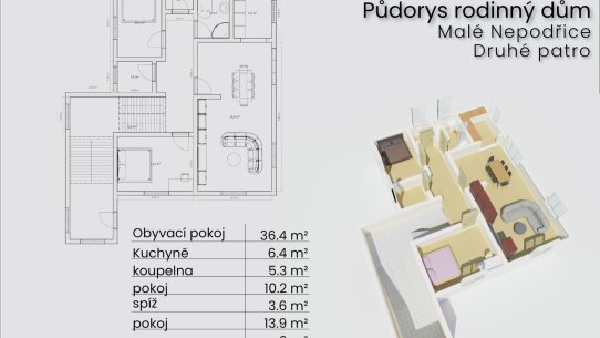 O klid a soukromí pro každého člena rodiny se postarají dvě ložnice. A kdyby vám to bylo málo, je tu podkroví o velikosti 117 m² připravené na vestavbu.