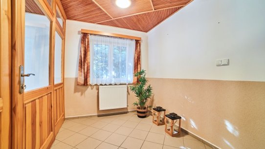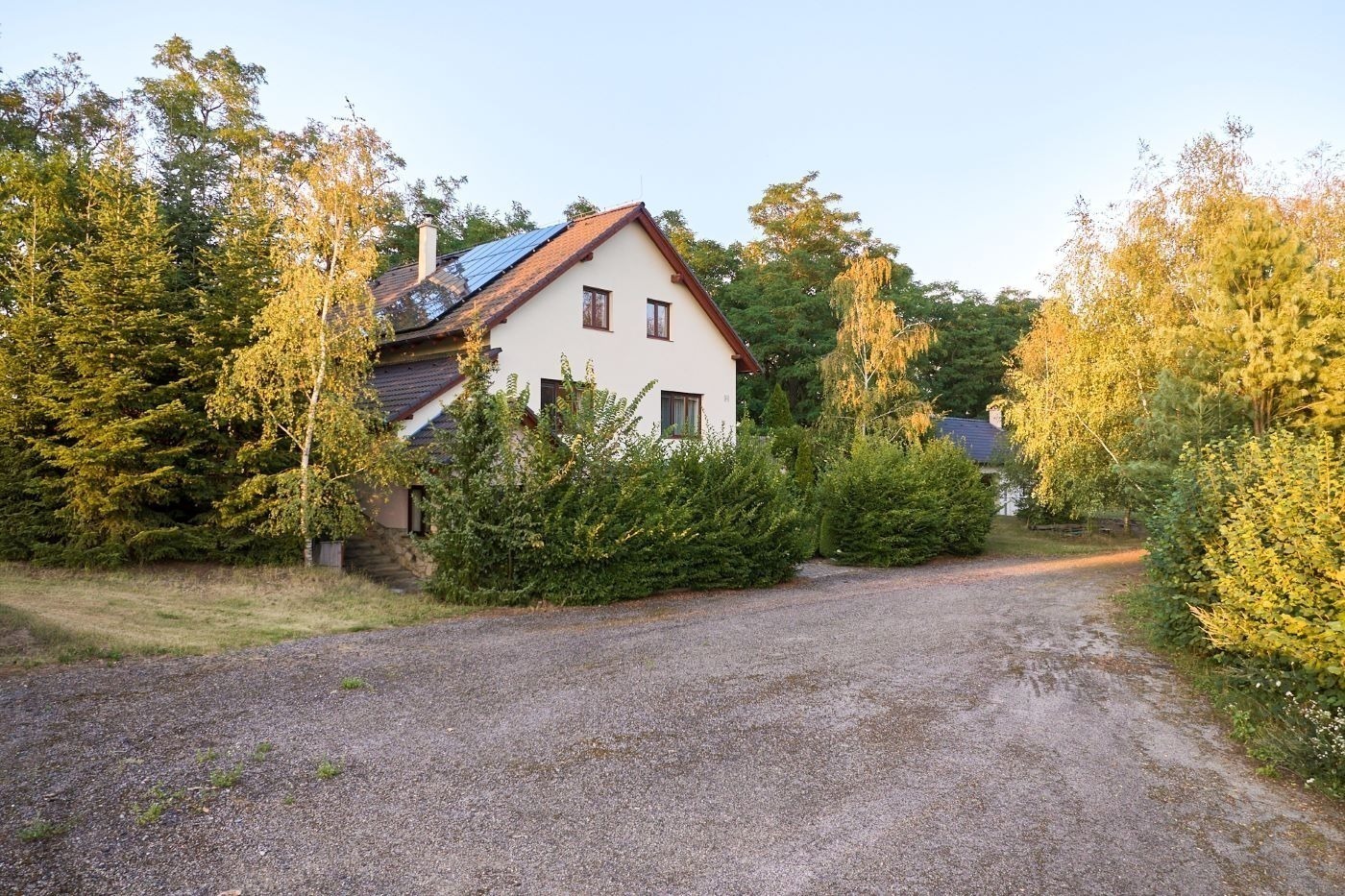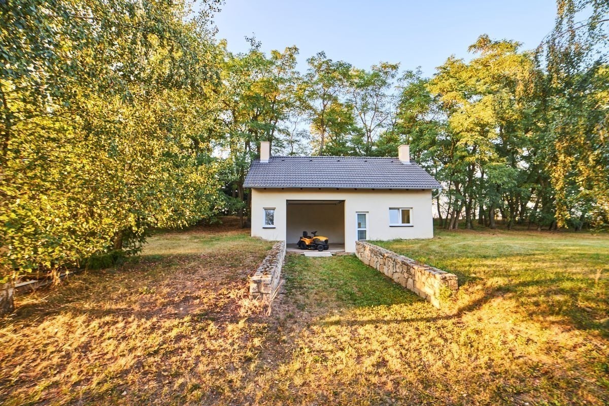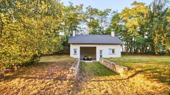 Navíc je tu zahradní domek, který můžete využít k rozšíření bydlení nebo vybudování domácího wellness – dovnitř se vejde zahradní traktor i sauna s vířivkou.