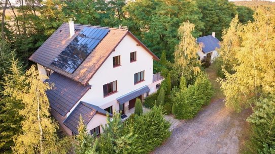 Dům byl postaven v roce 2008. Vytápění všech prostor je řešeno centrálně kotlem na tuhá paliva. Na střeše je FVE 10 kW, kterou lze využít i k vytápění. Voda je z obecního vodovodu, na pozemku je také studna. O ohřev vody se stará bojler. Kanalizace je řešena ČOV se vsakem. Do zahradního domku je přivedena elektřina i voda. Na pozemku jsou tři vjezdové brány.