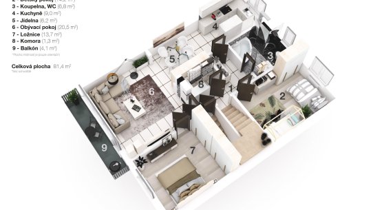 Řadový rodinný dům o velikosti 330 m2 má tři podlaží a skládá se z pěti ložnic, dvou kuchyní s obývákem, tří koupelen a suterénu se saunou. K domu patří zahrada s výměrou 500 m2, dlážděnou terasou a zahradním domkem. Před domem zaparkují až 4 vozy a ještě jedno parkovací místo je v garáži.V domě je také suterén s kotelnou, prádelnou, několika skladovacími prostory a hlavně finskou saunou se sprchou. Do garáže s dílnou se dostanete jak vraty z ulice, tak dveřmi z chodby v přízemí anebo ze zahrady.