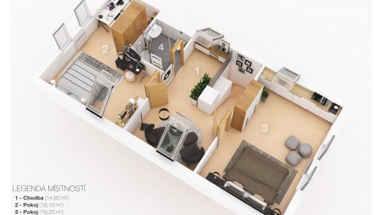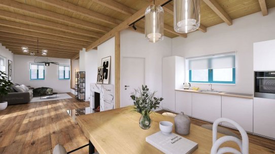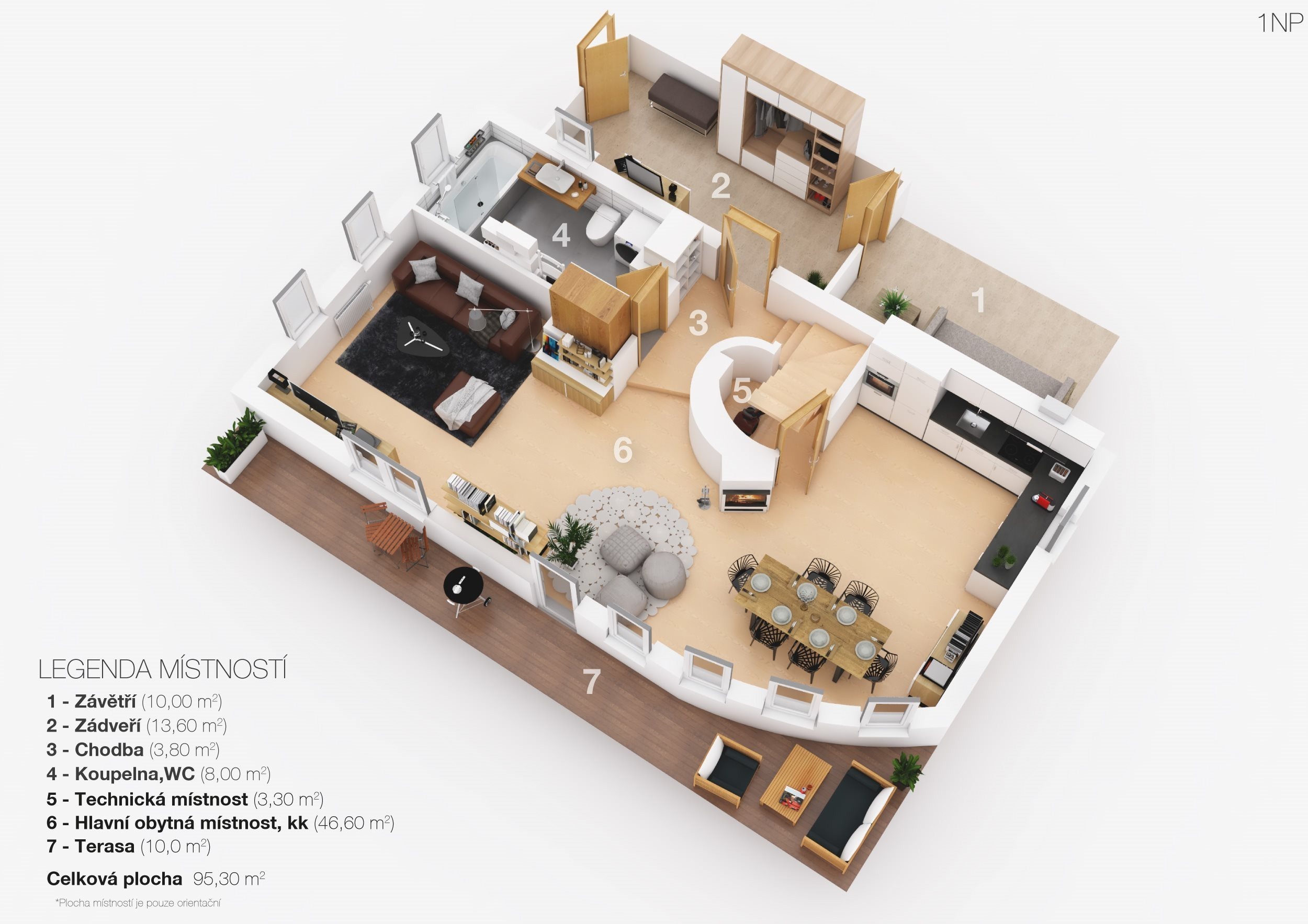 Pokud jste si vždycky chtěli dům zařídit podle sebe, tady k tomu budete mít příležitost. Dokončení povrchů i výběr vybavení interiéru totiž už bude na vás. K dispozici budete mít původní projekt a také vám rádi předáme kontakt na firmu, která dům stavěla