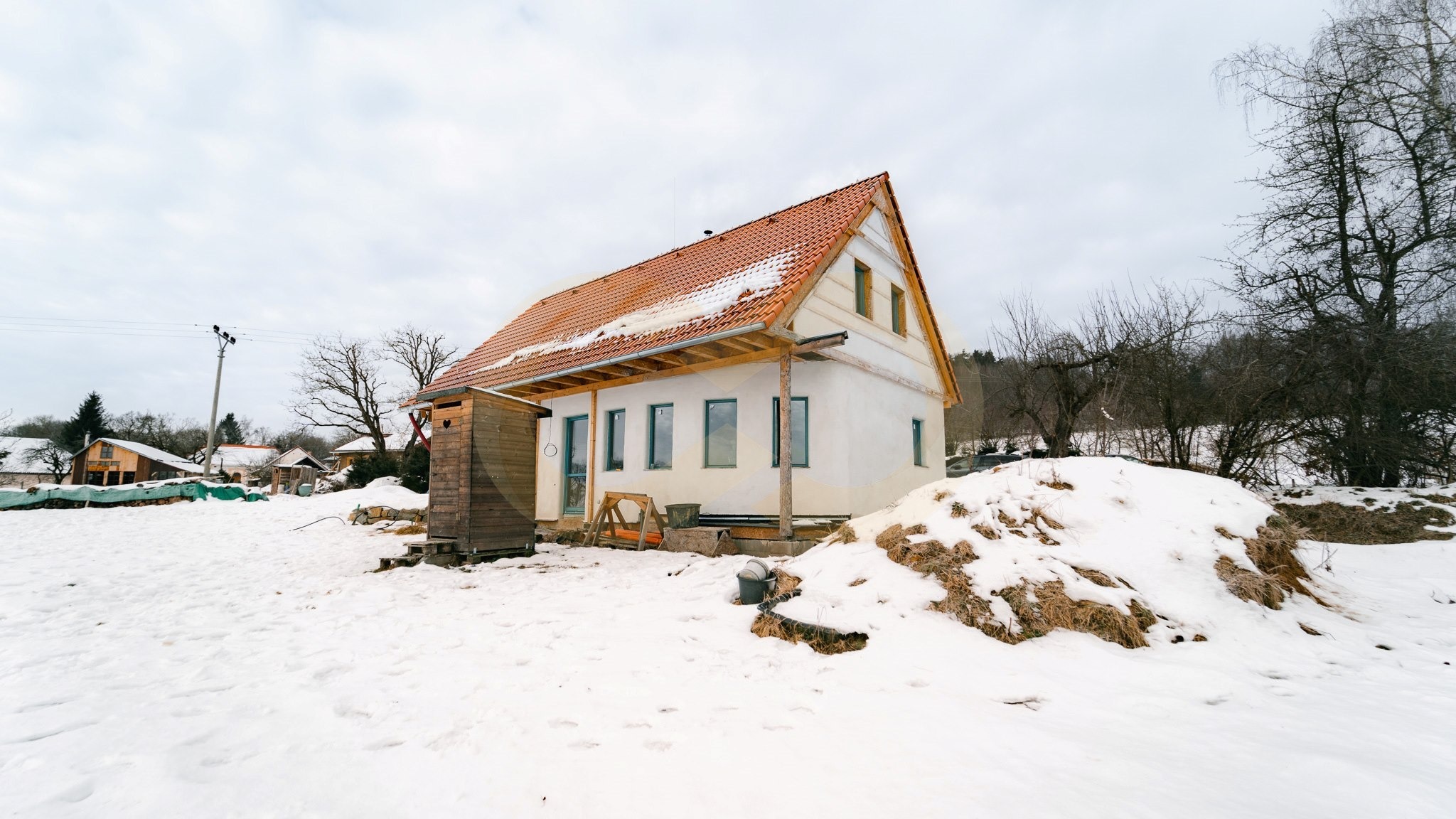 Dům se prodává ve fázi hrubé stavby s fasádou i vnitřními rozvody a na novém majiteli tak bude pouze dokončení vnitřních povrchů a vybavení interiéru. Jeho celková plocha je skoro 120 m2 a dispozičně si můžete vytvořit až 4+kk. Celková velikost pozemku, na kterém se dům nachází, je 1441 m2 .