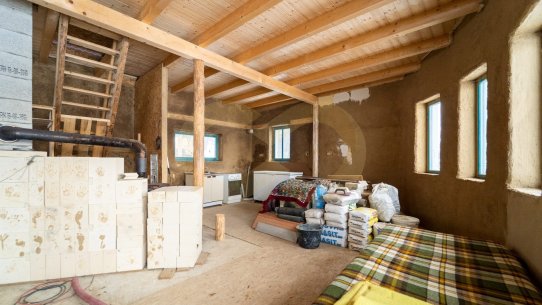 Zdi domu jsou ze dřevoslaměných panelů s hliněnou omítkou, které podporují zdravé vnitřní klima a využívají se při stavbě pasivních domů. Zvenčí domu je vápenná omítka a okna jsou dřevěná s trojsklem. Střecha je zateplená foukanou izolací. Vytápění bude zajištěno centrálně krbem a v domě je příprava na čističku vod. Nechybí ani nádrž na dešťovou vodu, která je svedená do koupelny. U domu je také vlastní vrt.
