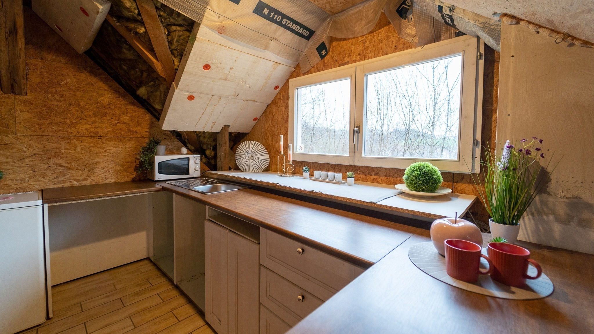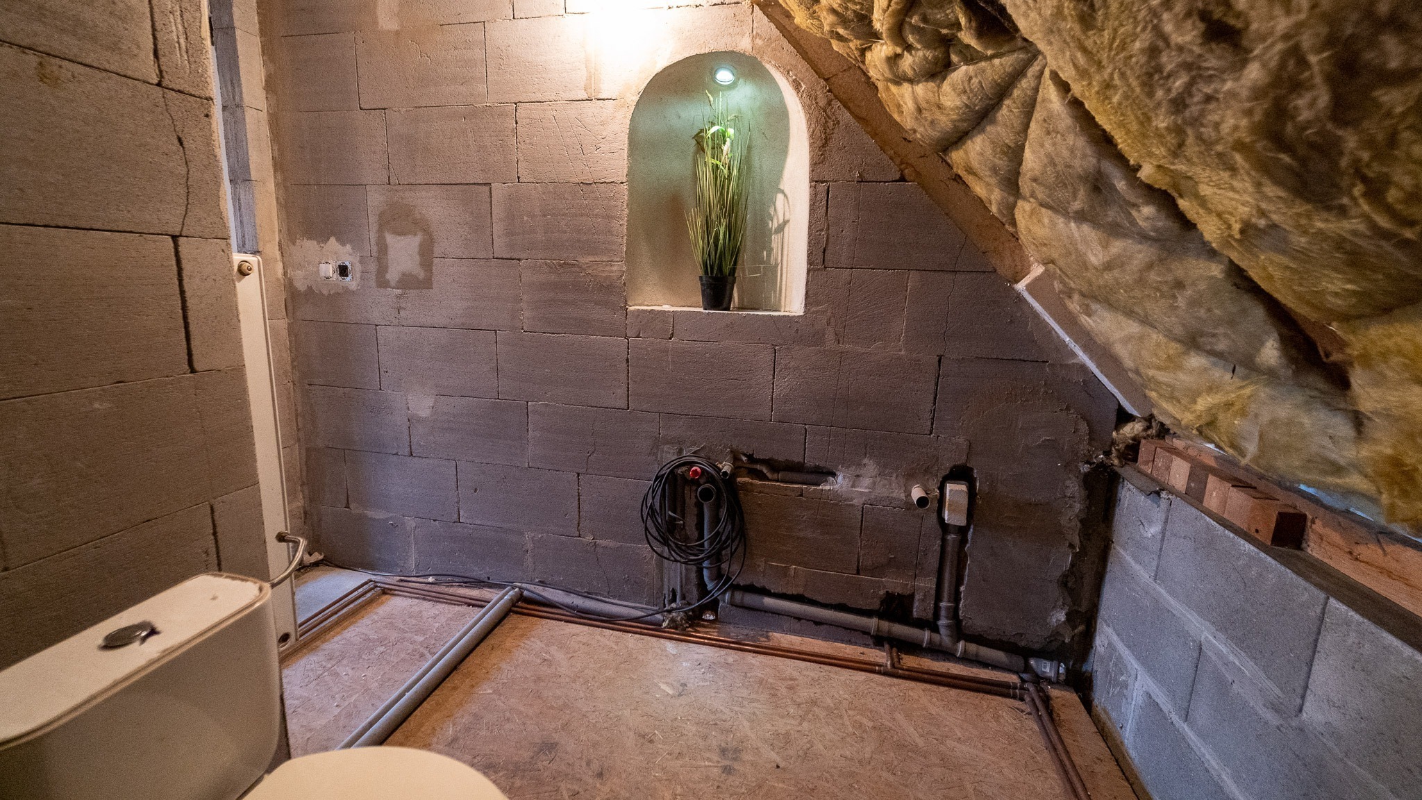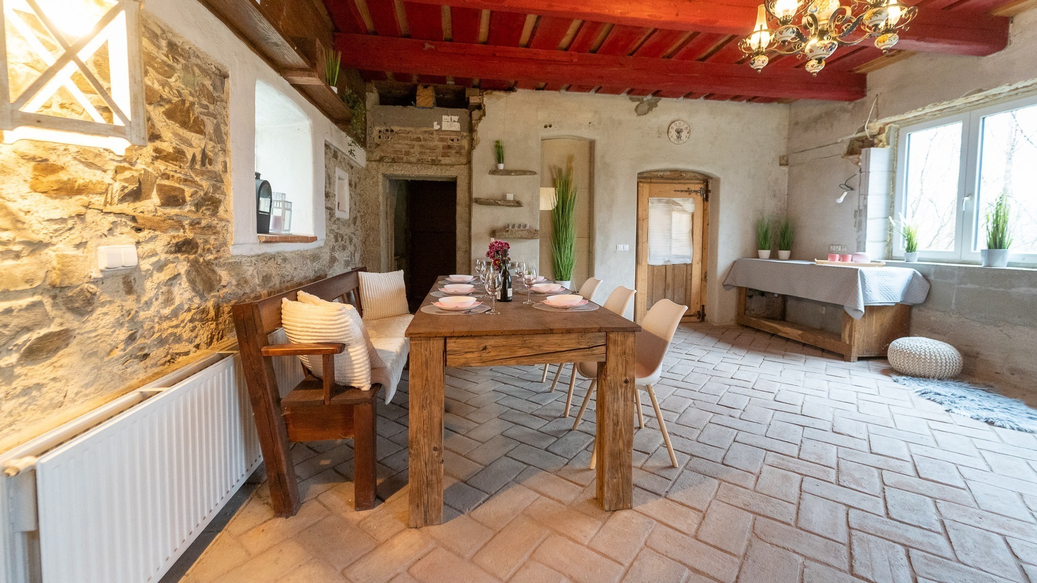 Dům se prodává ve stavu zdařile rozpracované rekonstrukce. Jsou hotové nové rozvody vody, kanalizace a topení. Odpady jsou svedeny do jímky a pro pitnou vodu je potřeba udělat vrt. Vytápění je zajištěno kotlem na tuhá paliva s možností úpravy na tepelné čerpadlo. Připravená je také elektřina, kterou je potřeba pouze napojit na přípojku. Dům má nový krov s krytinou a zateplením a také nový komín. Na původní kamenné zdi je udělaný nový věnec, na který se zdilo nové patro. Nainstalována jsou také nová okna a francouzské dveře vedoucí na zahradu. Podlahy jsou vykopané a zaizolované, v horním pokoji, kuchyni a jídelně už je pokládka dokončená, ve dvou zbývajících pokojích částečně.