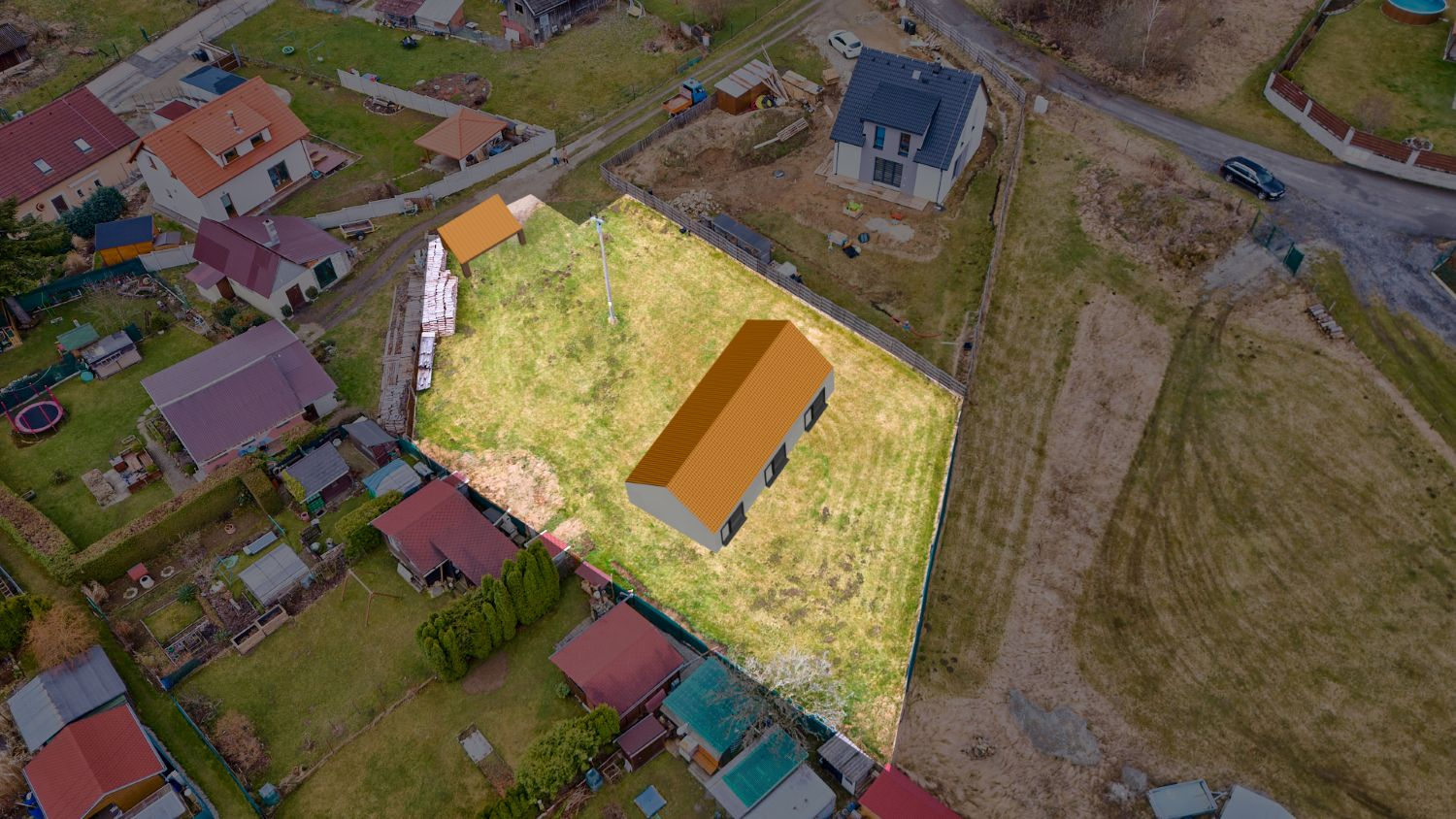 Postavíte si tu až dvoupatrový dům přesně podle svých představ. Zastavět můžete 35 % z výměry pozemku a zbytek proměníte v krásnou zahradu.