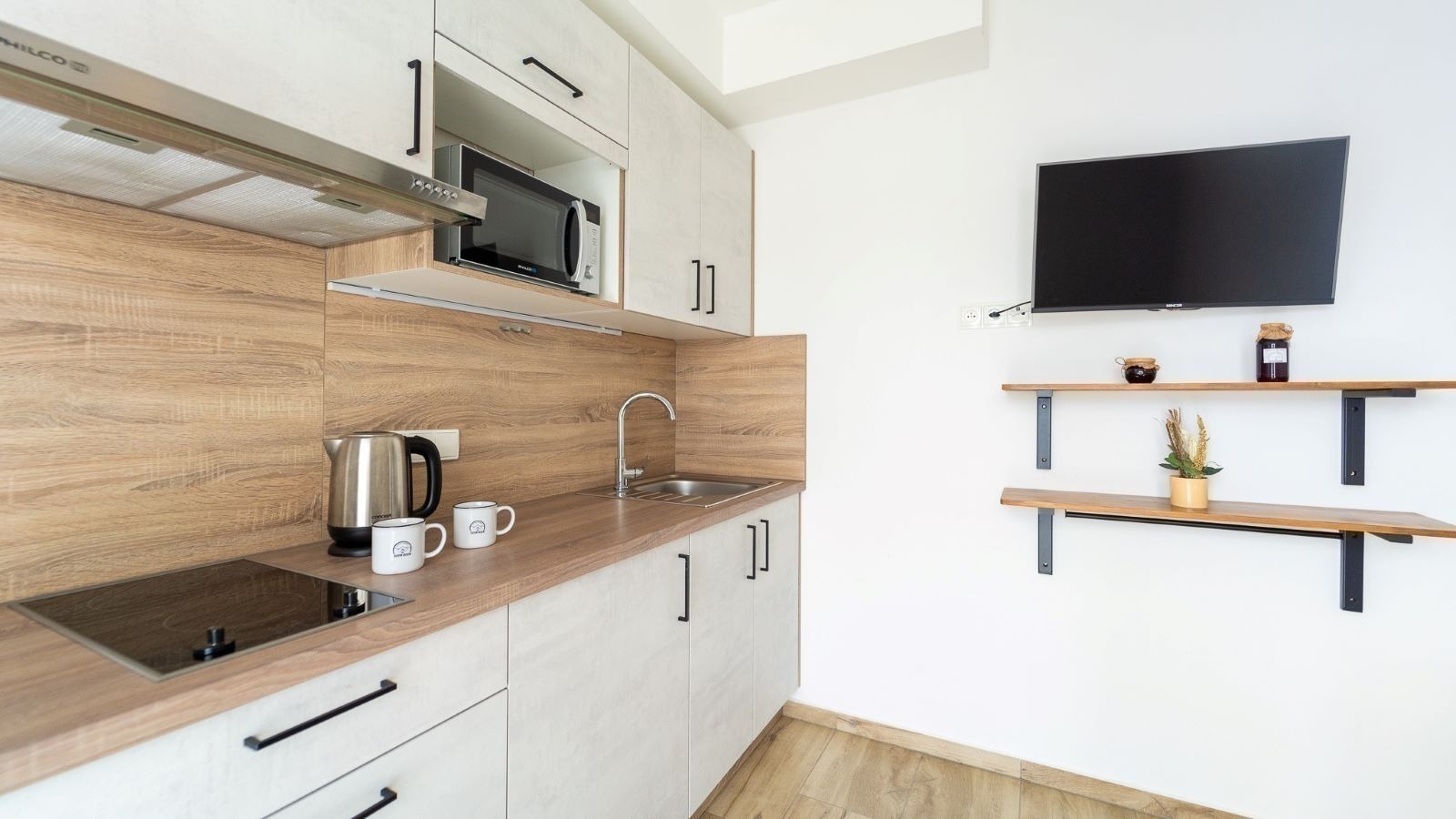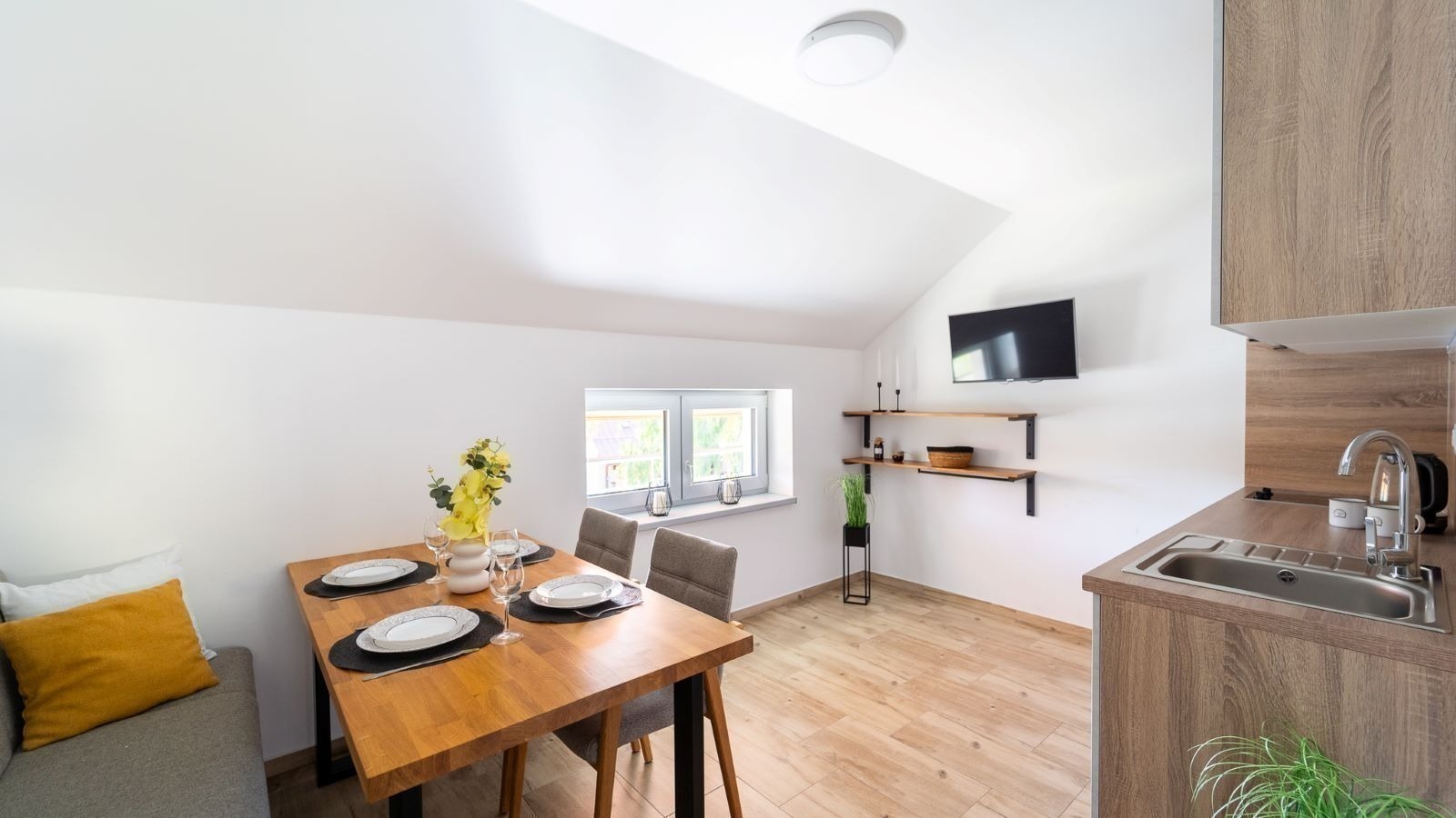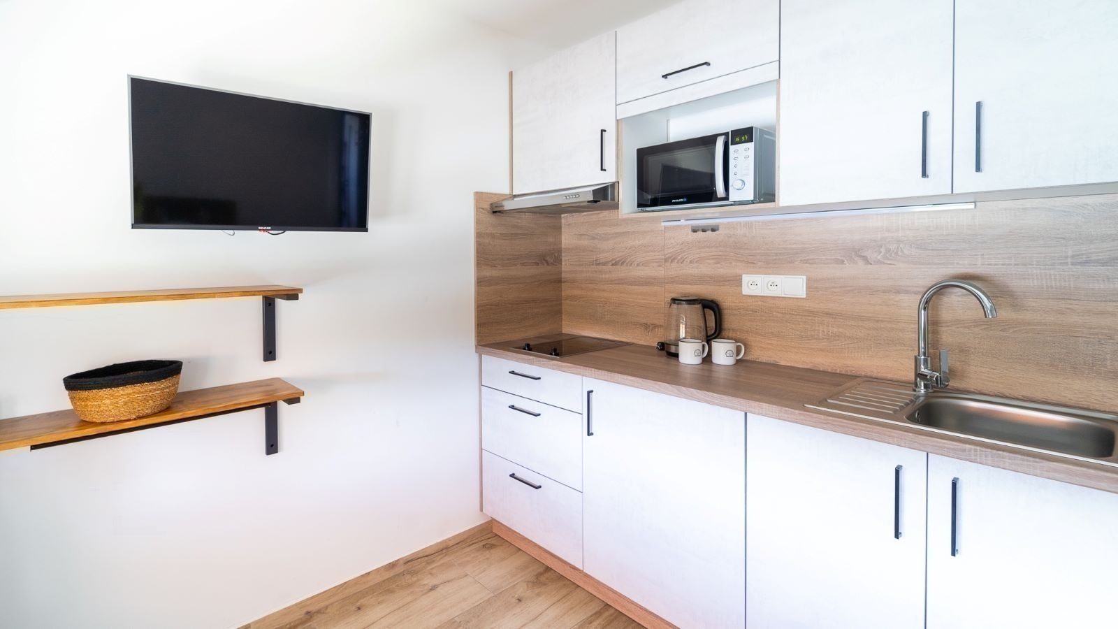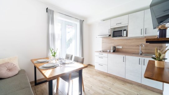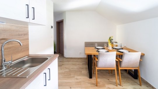 Je jen na vás, jestli se v něm zabydlíte sami, nebo ho přidáte do nabídky k pronájmu. Apartmán je zařízen vším, co mohou vaši hosté v případě pokračování v ubytování ke spokojenosti potřebovat. Od postele až po plně vybavenou kuchyň. O tom ostatně svědčí hodnocení 9,5 na rezervačních portálech Booking, Airbnb, e-chalupy.cz a Trevlix.