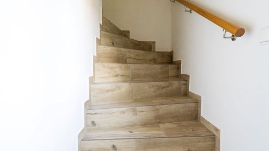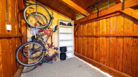 V prvním patře je obývák se vstupem na terasu s pergolou. Na něj navazuje kuchyň v dřevěném dekoru vybavená všemi potřebnými spotřebiči. Kromě toho je na patře samostatná toaleta, prádelna a také dva sklady se samostatnými vstupy zvenku. Po schodech vystoupáte do patra, kde čekají tři ložnice s francouzskými okny a koupelna s toaletou a sprchovým koutem.