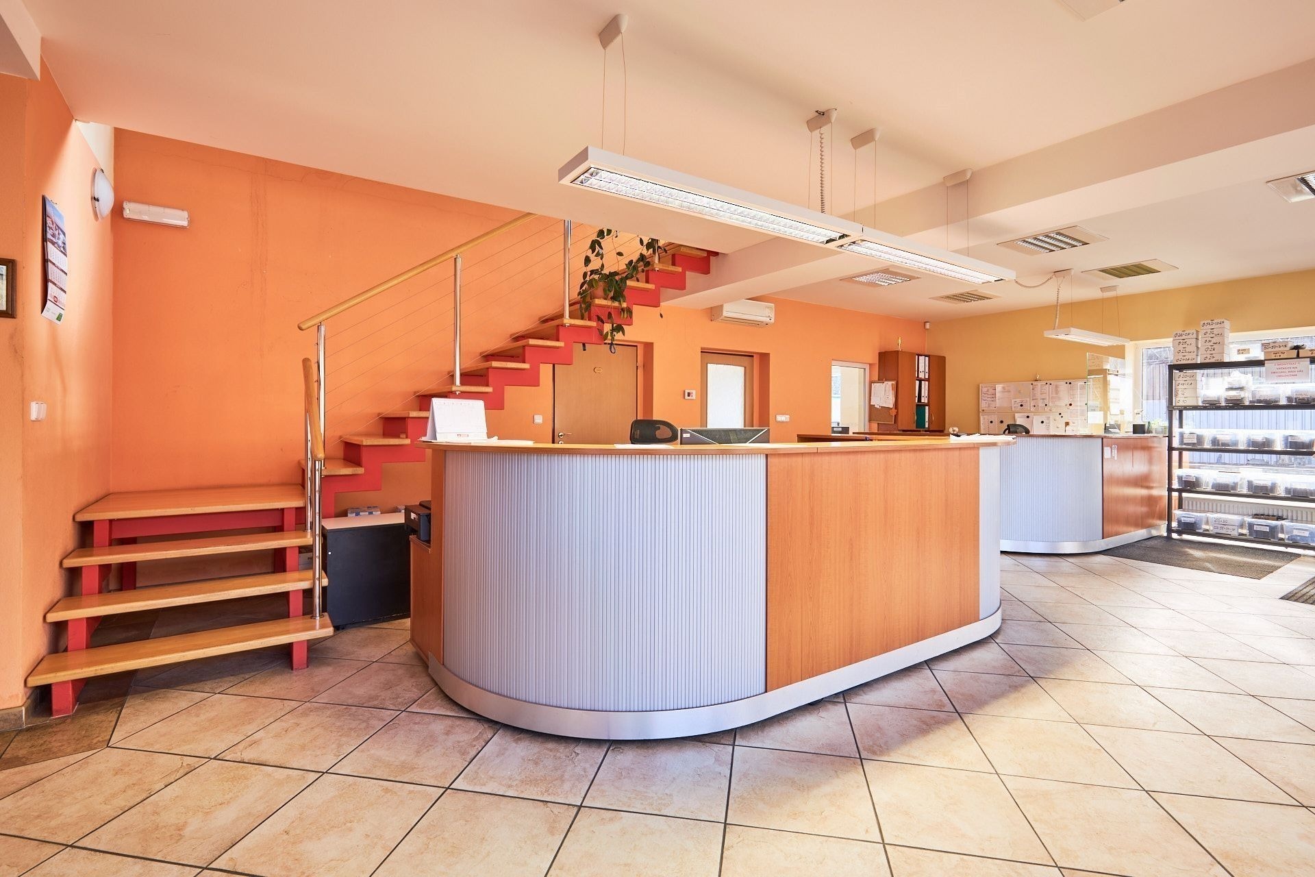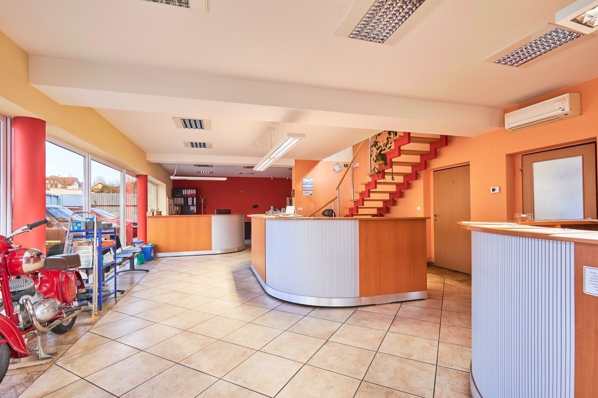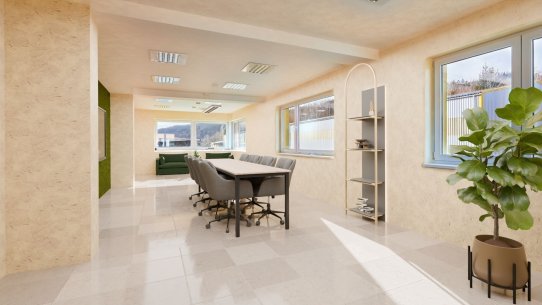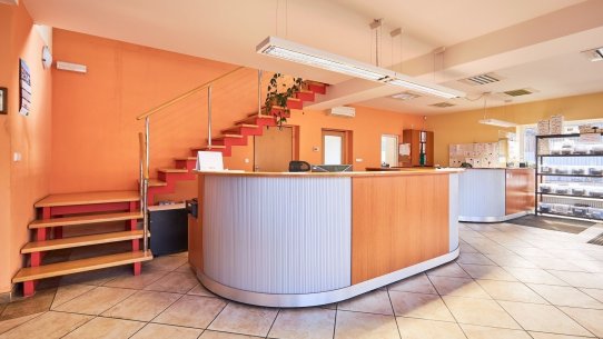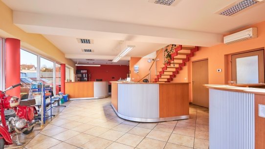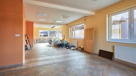 Třešničkou na dortu je moderně řešená administrativní budova. Stavba započala v roce 2008 a v přízemí najdete reprezentativní showroom, dvě komfortní kanceláře a zázemí pro zaměstnance skladu (včetně koupelny). Patro je téměř nevyužité, takže ho můžete proměnit v další kanceláře, prostornou zasedačku nebo dokonce firemní byt.