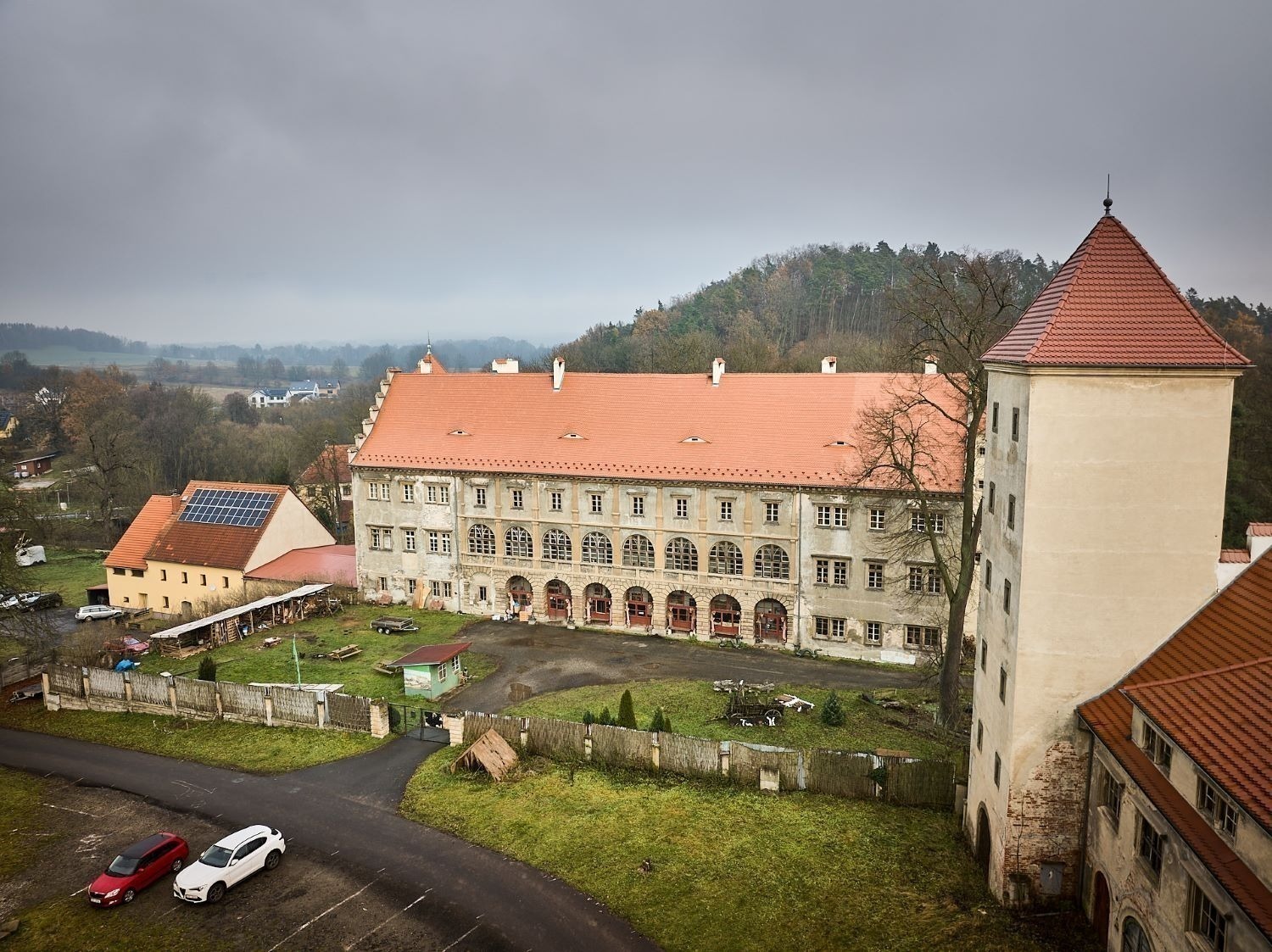 Kromě toho jsou tu 4 zařízené byty – v jednom bydlí kastelán a další můžete využít podle svých představ. Třeba na zážitkové pronájmy.