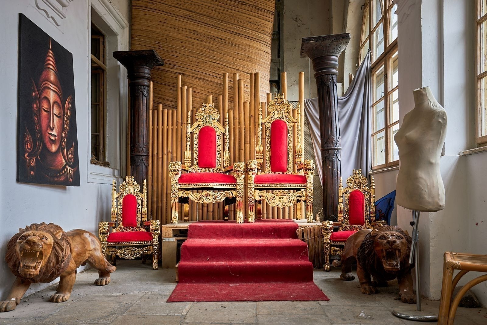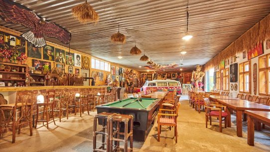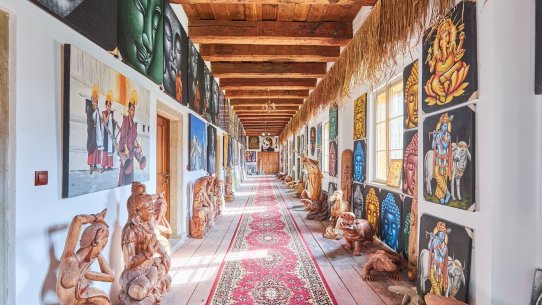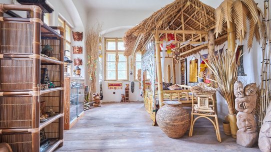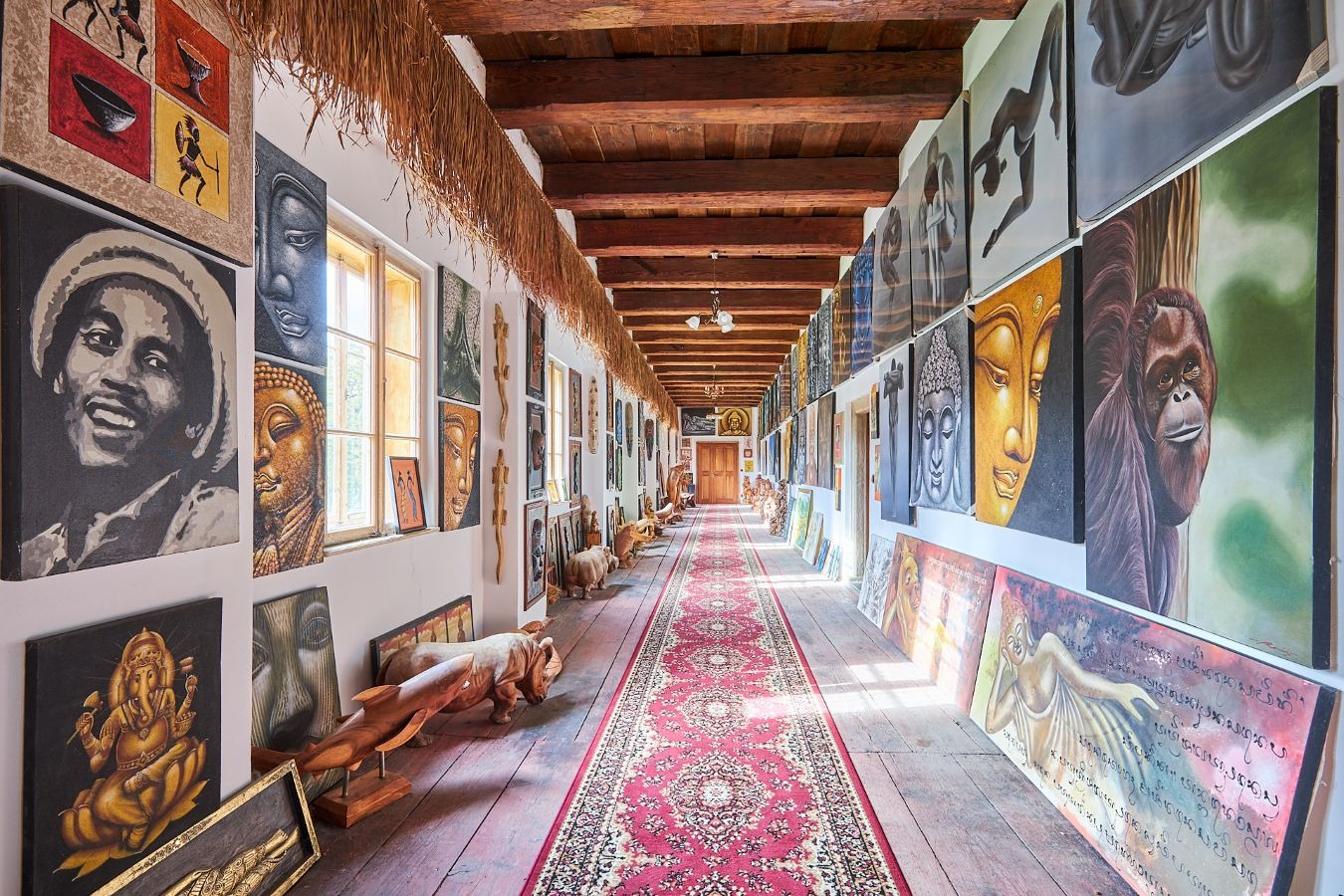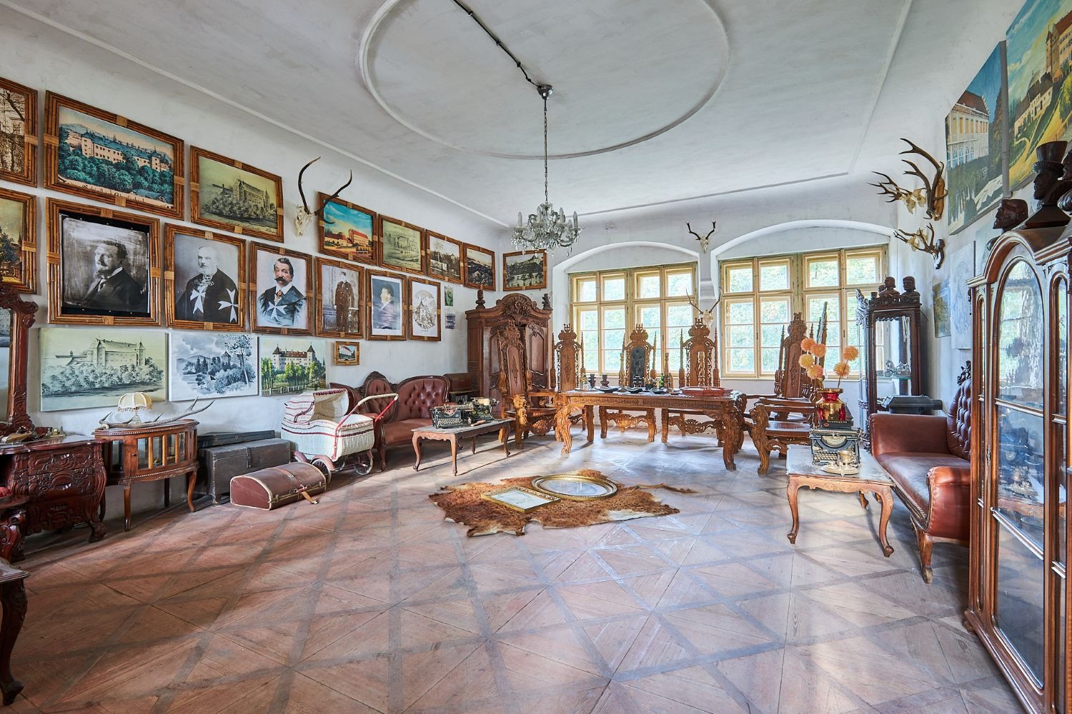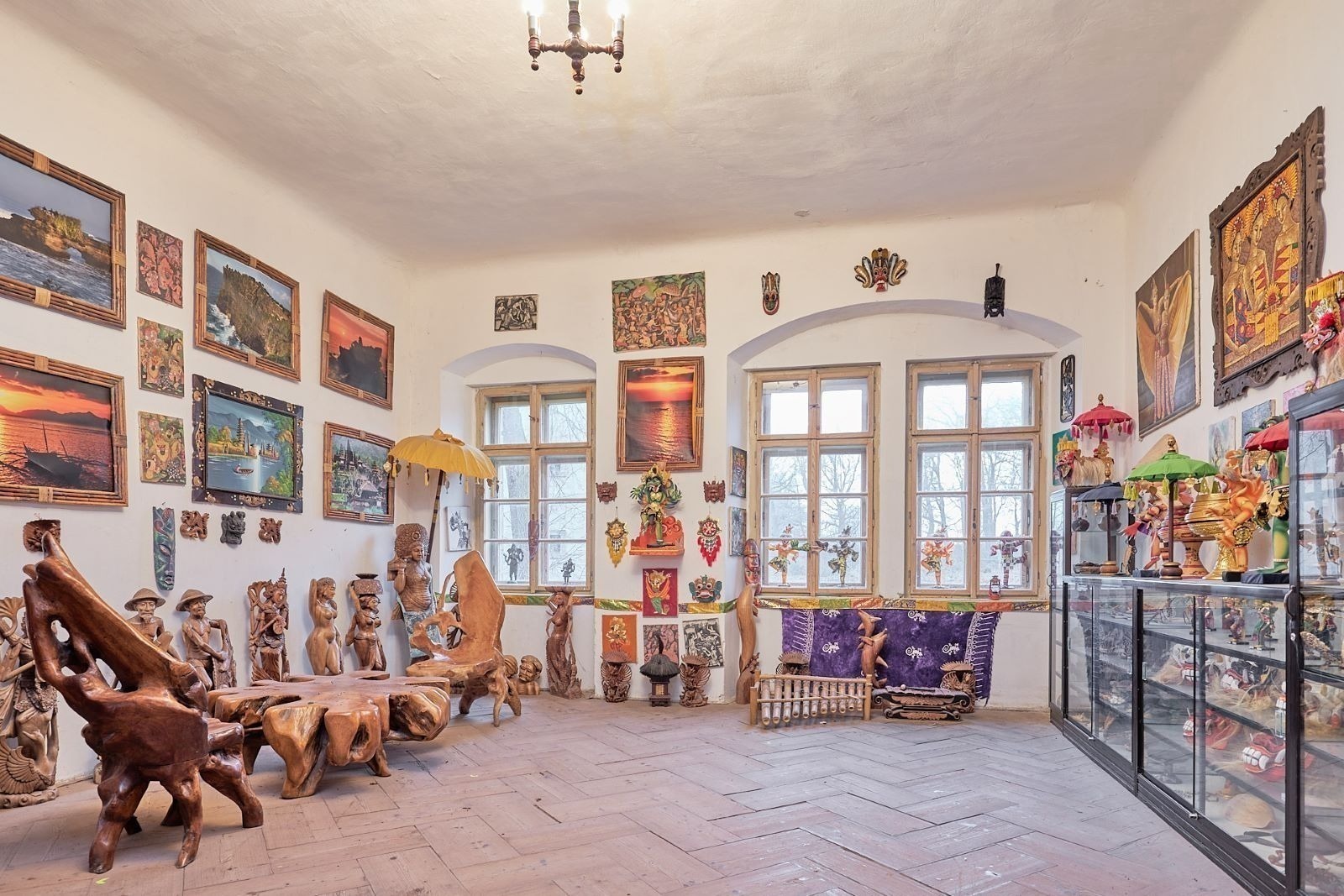 V části zámecké budovy majitel zřídil unikátní expozici etnografických předmětů, které přivezl ze svých dobrodružných cest za domorodými kmeny ve více než 120 státech.