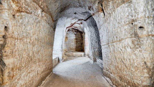Opravdovou skrytou perlou je rozlehlé sklepení vytesané do pískovcové skály. Tyhle prostory přímo vybízí k zařízení unikátní restaurace nebo vinárny.